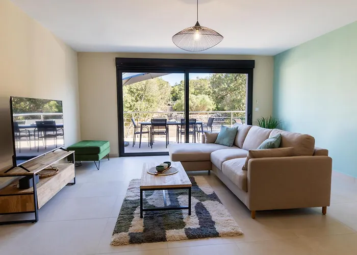 Bonifacio Les Jardins ensoleillés de Piale appartementen bieden een zitruimte, en zijn uitgerust met airconditioning, evenals moderne voorzieningen zoals een TV en een flatscreen TV met satellietzenders. Hier vindt u gemakken als een apart toilet en een douche.